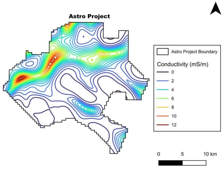 Global and Cosa completed Phase 1 earlier this year, a ZTEM survey across the entire Astro Project (over 450 km²), an advanced airborne sensor capable of detecting basement conductivity beneath the sandstone cover.